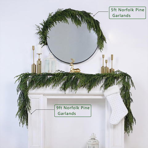 Guirnalda de vegetación artificial de alta calidad, longitud ajustable, pino Norfolk, plantas decorativas realistas para el hogar, tienda, evento de boda